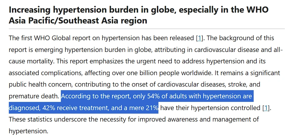 Organisasi Kesehatan Dunia (WHO) melaporkan bahwa dari seluruh penderita hipertensi: